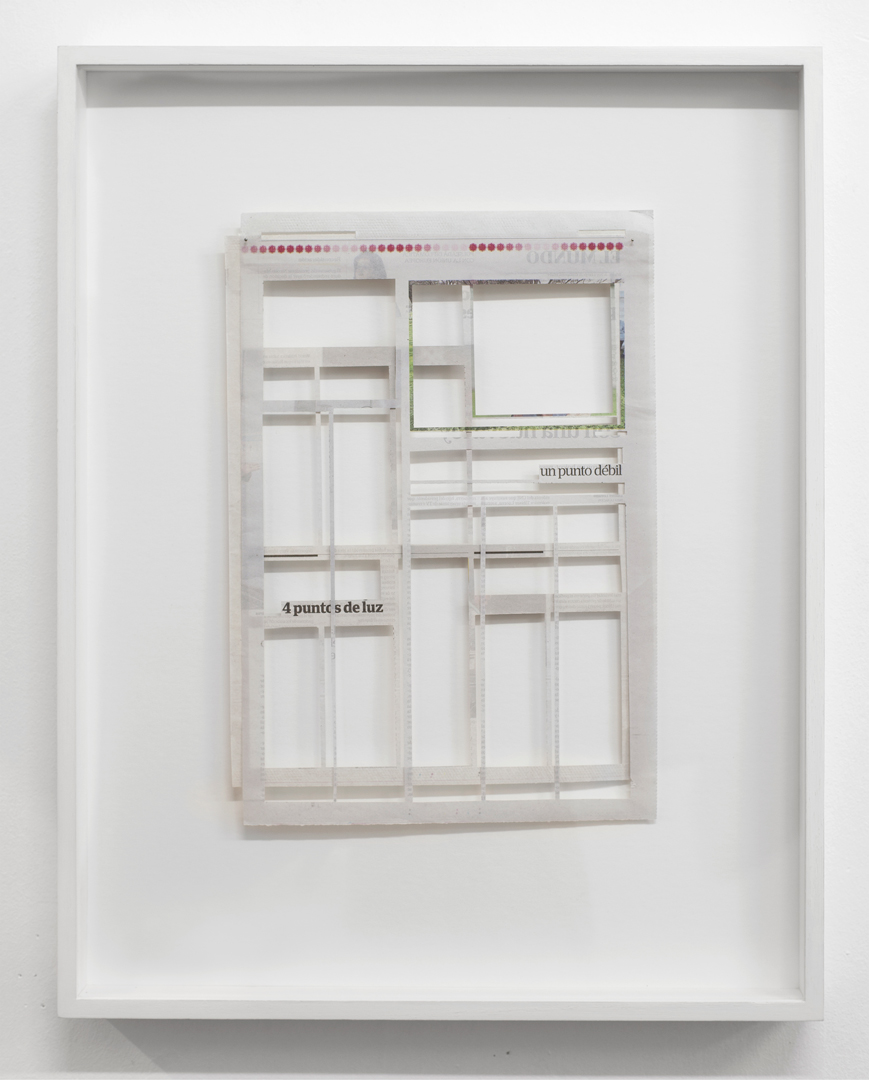 Las hojas muertas de lo que fue novedad se exhiben colgadas con alfileres como insectos en un museo didáctico. La disección de los periódicos permite que emerja aquello que subyace a la superficie del texto o lo que habita en sus márgenes. El blanco de la hoja en tanto potencia condensa todas las noticias que fueron contadas, las que vendrán. Pero asimismo las que nunca serán dichas. Lo que ocultan los medios, lo que no sabe el cuerpo social (o lo que no sabe que sabe). Todo documento de cultura es también un documento de barbarie. Nos rigen esquemas que estructuran el decir. Entre medidas y límites, el lenguaje queda atrapado en su insignificancia. Grita algo que no alcanza a comunicar. Nunca. El límite de lo cognoscible, sinécdoque de lo real.
