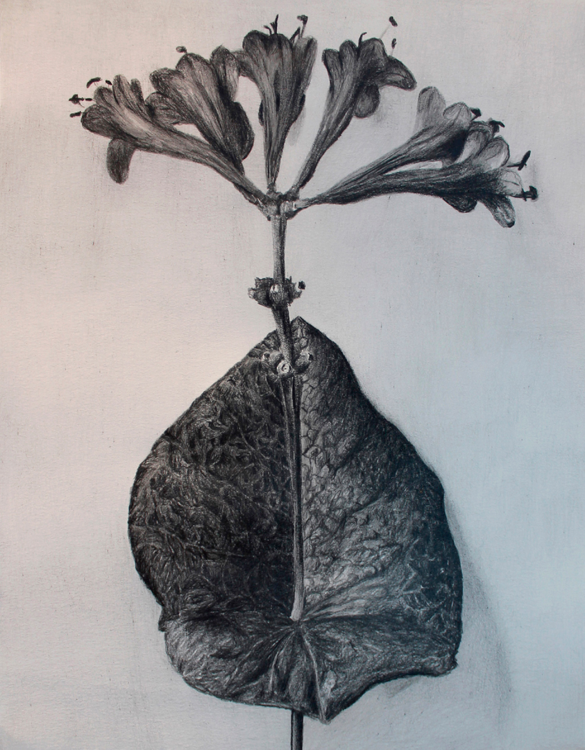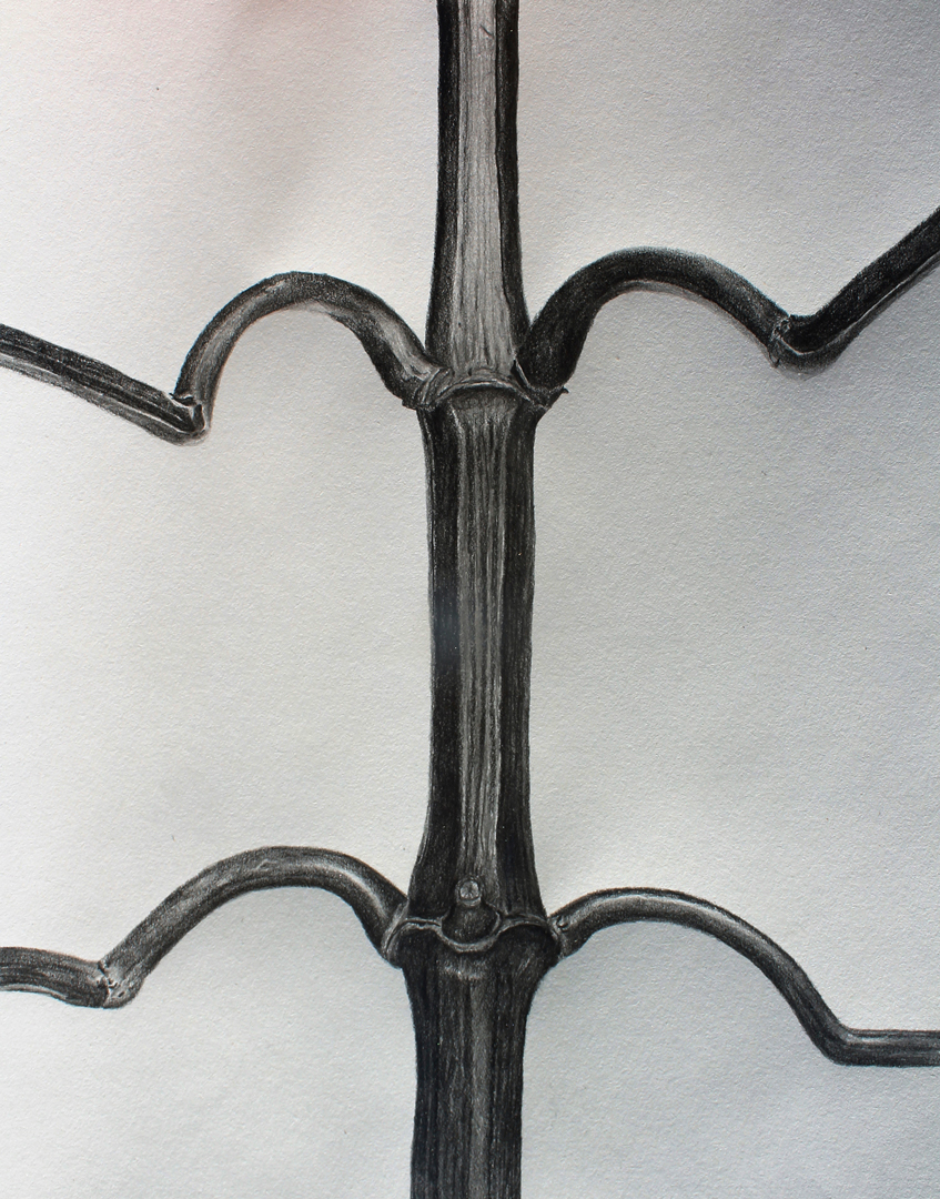 Con una mínima intervención, logra lo imposible: trasladar una obra fuera de su tiempo e interrogar así las capacidades significantes del lenguaje. Igual que Pierre Menard cuando emprende la tarea absurda de rescribir El Quijote, crea una obra infinitamente más rica y más compleja que la original. Esto es evidente cuando copia con lápiz las fotografías de plantas del libro de Karl Blossfeldt para luego volverlas a fotografiar, imprimirlas en papel de algodón y enmarcarlas a la manera del fotógrafo, casi a modo de falsificación. Gracias a este gesto, el original como concepto se desvanece o, mejor dicho, se multiplica en un número indefinido, y tal vez infinito, de lenguajes pictóricos que se prolongan remitiéndose los unos a los otros. Cada obra es parte de una serie que continúa y se expande. Es por eso que, en la selección de dibujos colgados en las paredes de la sala, en su dudosa autoría, se intuye un gigantesco laberinto de textos que no tiene fin ni principio, ni externo muro ni secreto centro.