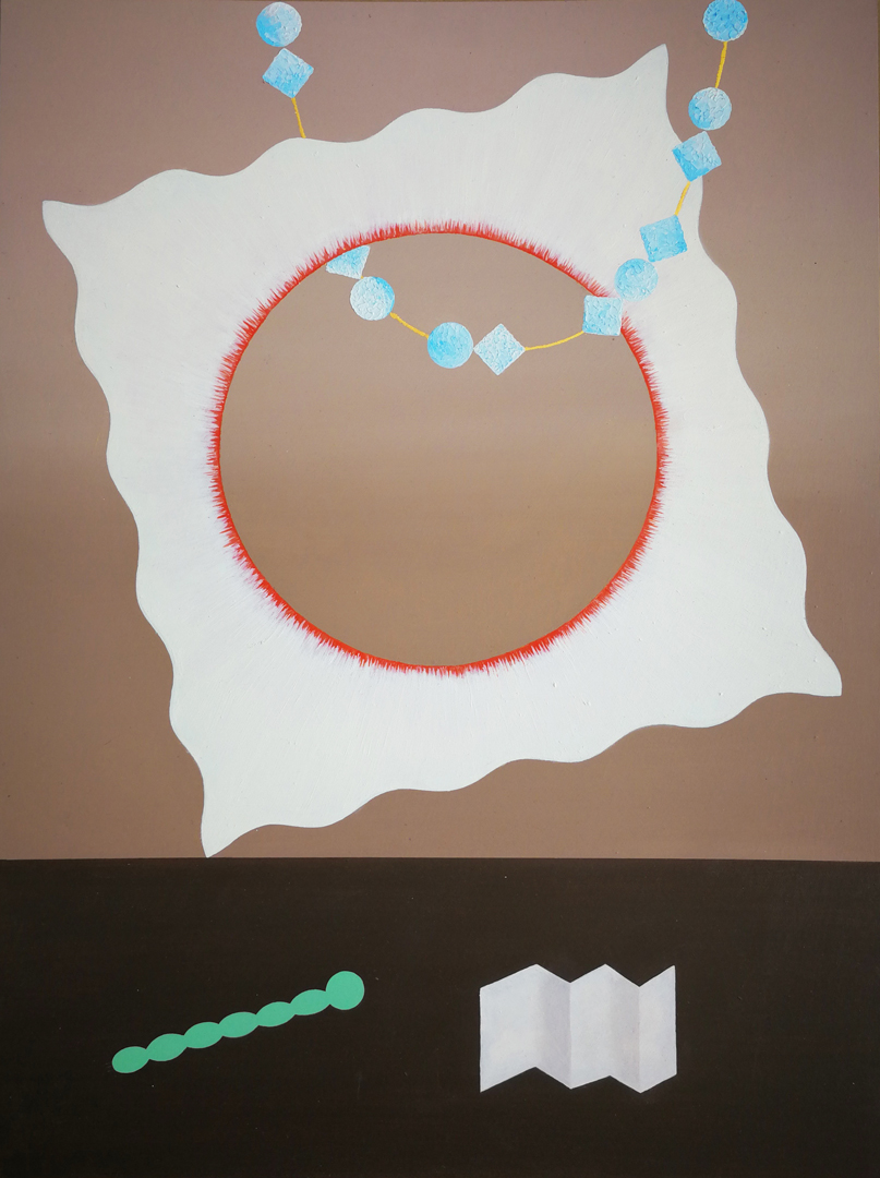 Si hubiera que hurgar un parentesco dentro del entramado pictórico de la artista, no sería el del esteticismo de los grandes paisajes ni de los exploradores de la selva o la montaña. Tampoco levanta la mirada al cielo. No busca en lo inconmensurable su tema, no le interesa la conquista de lo inútil. La suya es, en cambio, una estética de lo pequeño y cotidiano. Mediante el pulido intransigente de una primera persona funda ahí su paisaje de abstracción doméstica. Con cierto aire a bodegón o a naturaleza muerta, lo que aparece en sus terrarios rebosa, por el contrario, de vida. Aquellos elementos incapaces de ocupar el lugar de sujeto en nuestra cosmovisión antropocéntrica brotan entre deshechos y materiales, proyectándose hacia una nueva cosmología vegetal. De este modo, las figuras que integran estas pinturas existen por sí mismas, desafiando nuestro sistema social que sólo recurre a las formas vivas e inertes para extraerles un valor utilitario. La mutación y la metamorfosis son elementos predominantes porque, al igual que en los sueños, una cosa es una cosa pero también muchas otras. Sus cualidades se entremezclan al punto de ser indistinguibles.